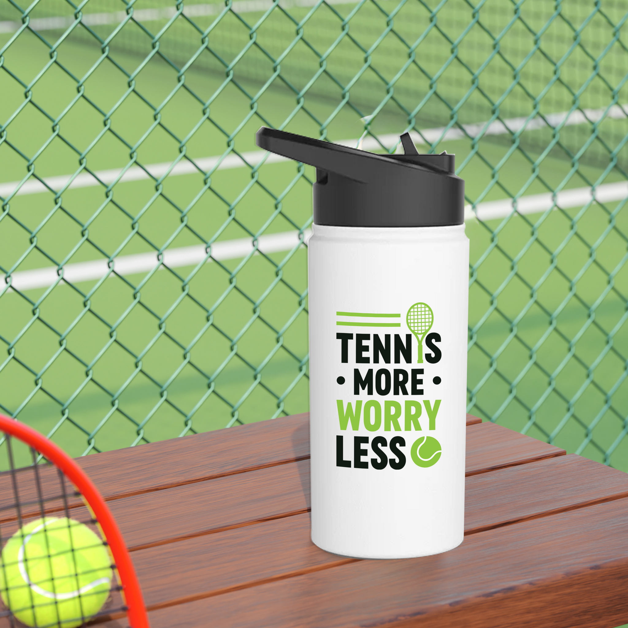 Sporty Steel Water Bottle – tennis More Worry less Insulated, Eco-Friendly & Travel-Ready